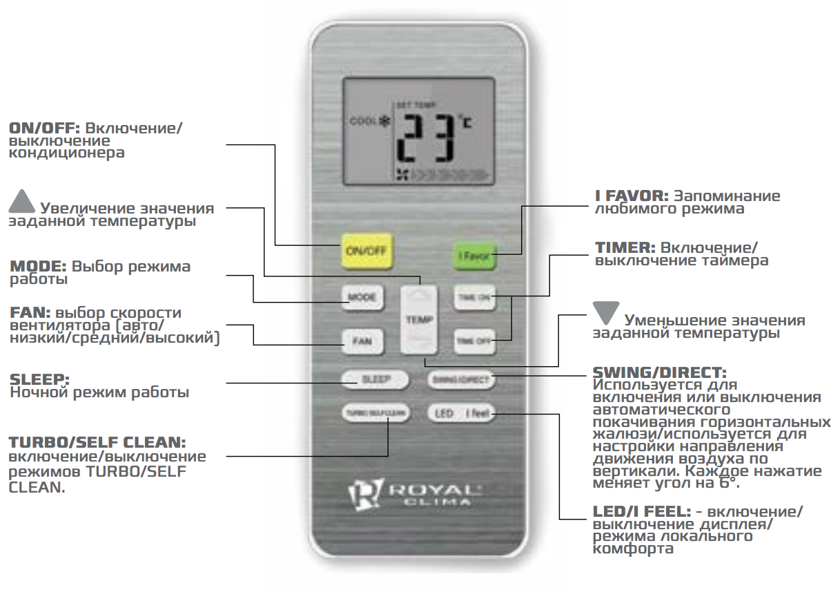 Vous avez bien regardé votre télécommande, mais vous n'avez pas trouvé la touche "MODE" ni dessus ni sous le couvercle. Mais vous voyez les icônes "gouttelette", "éventail", "flocon de neige" et "soleil". Nous avons besoin du "soleil", et nous le choisissons.