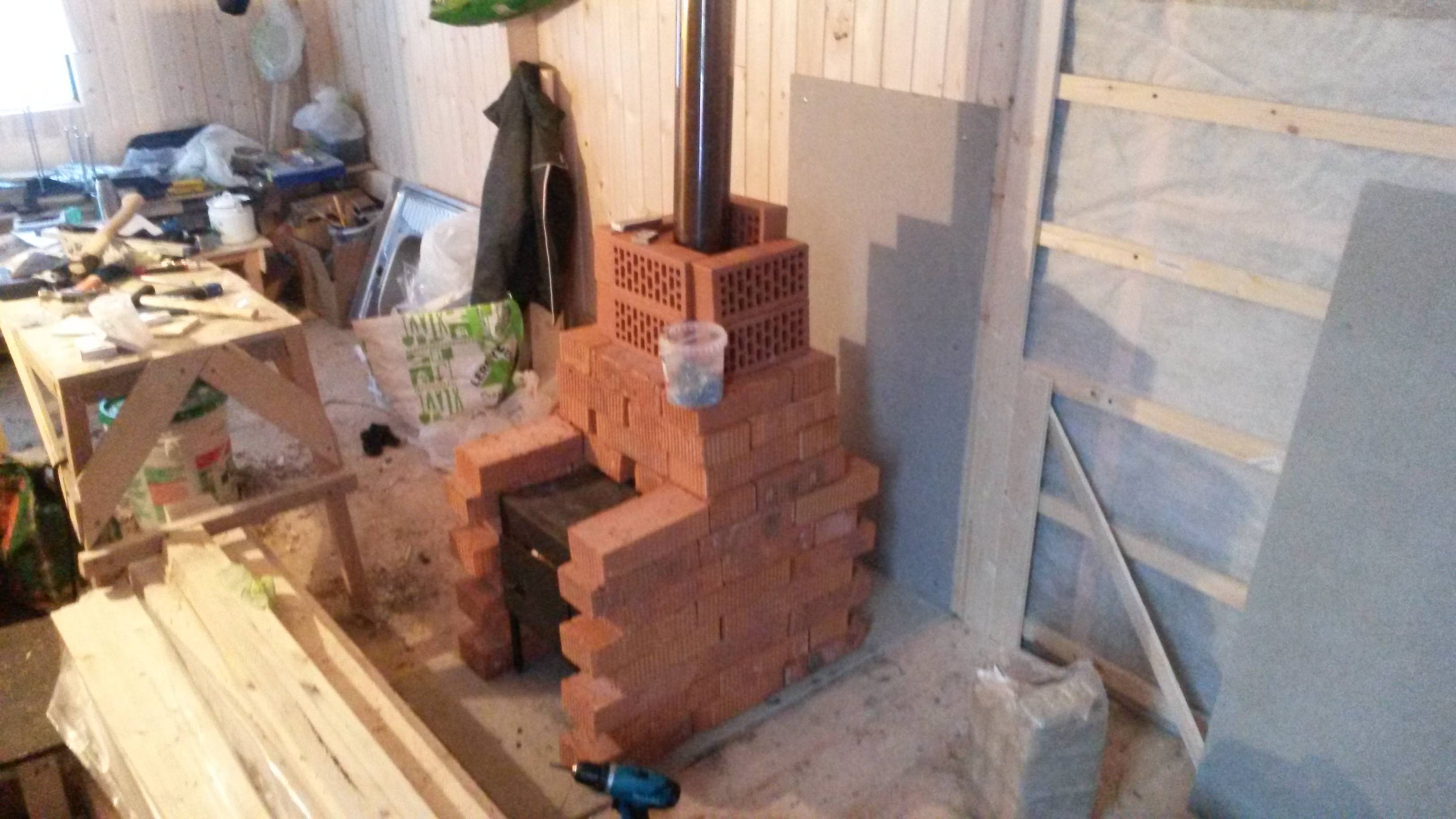 11. La maçonnerie peut être finie à la hauteur du poêle ou vous pouvez fermer la cheminée avec de la maçonnerie. Dans ce dernier cas, il est nécessaire de prévoir des trous de ventilation autour de la cheminée.