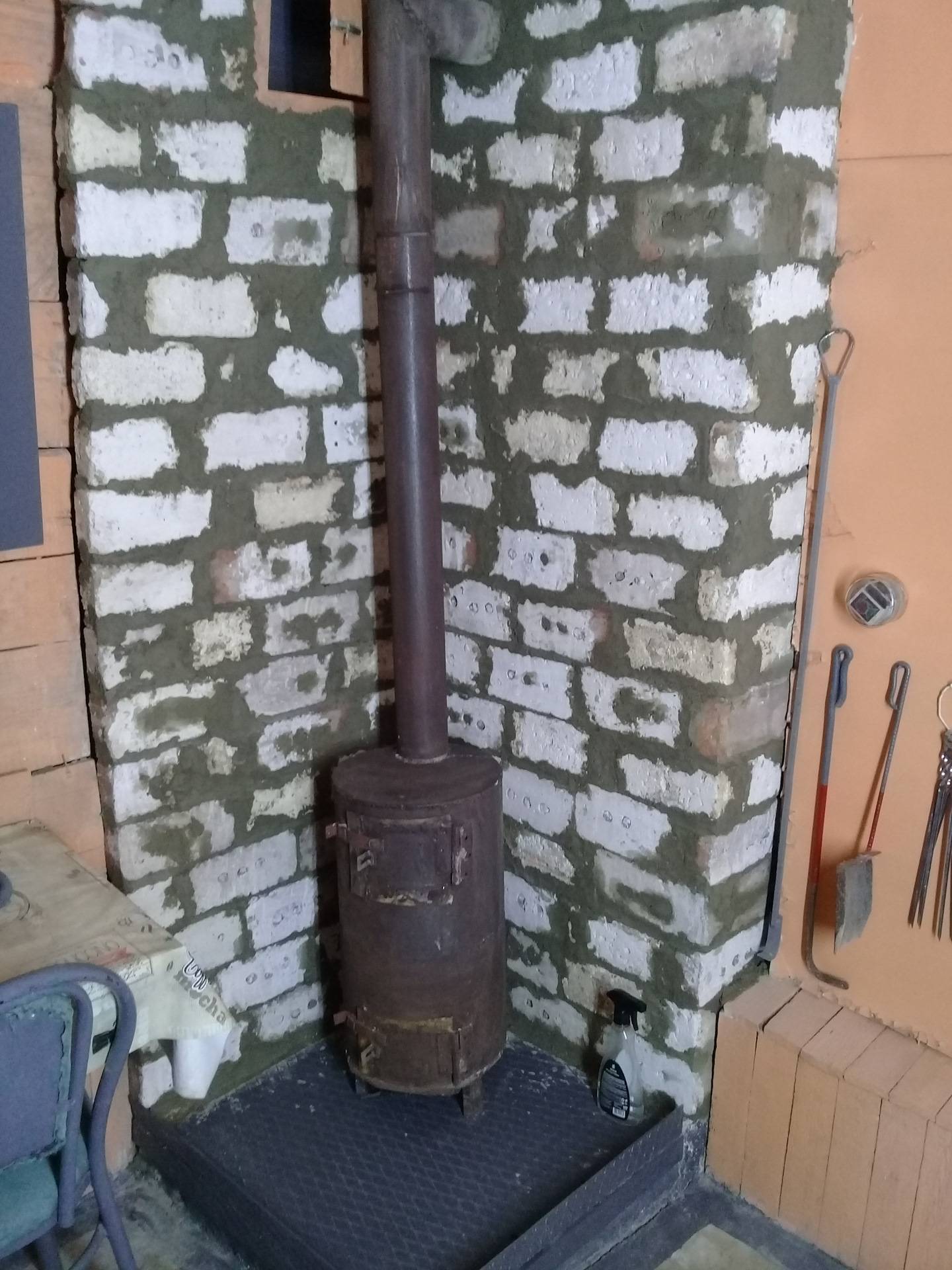 Brique autour du poêle en fer