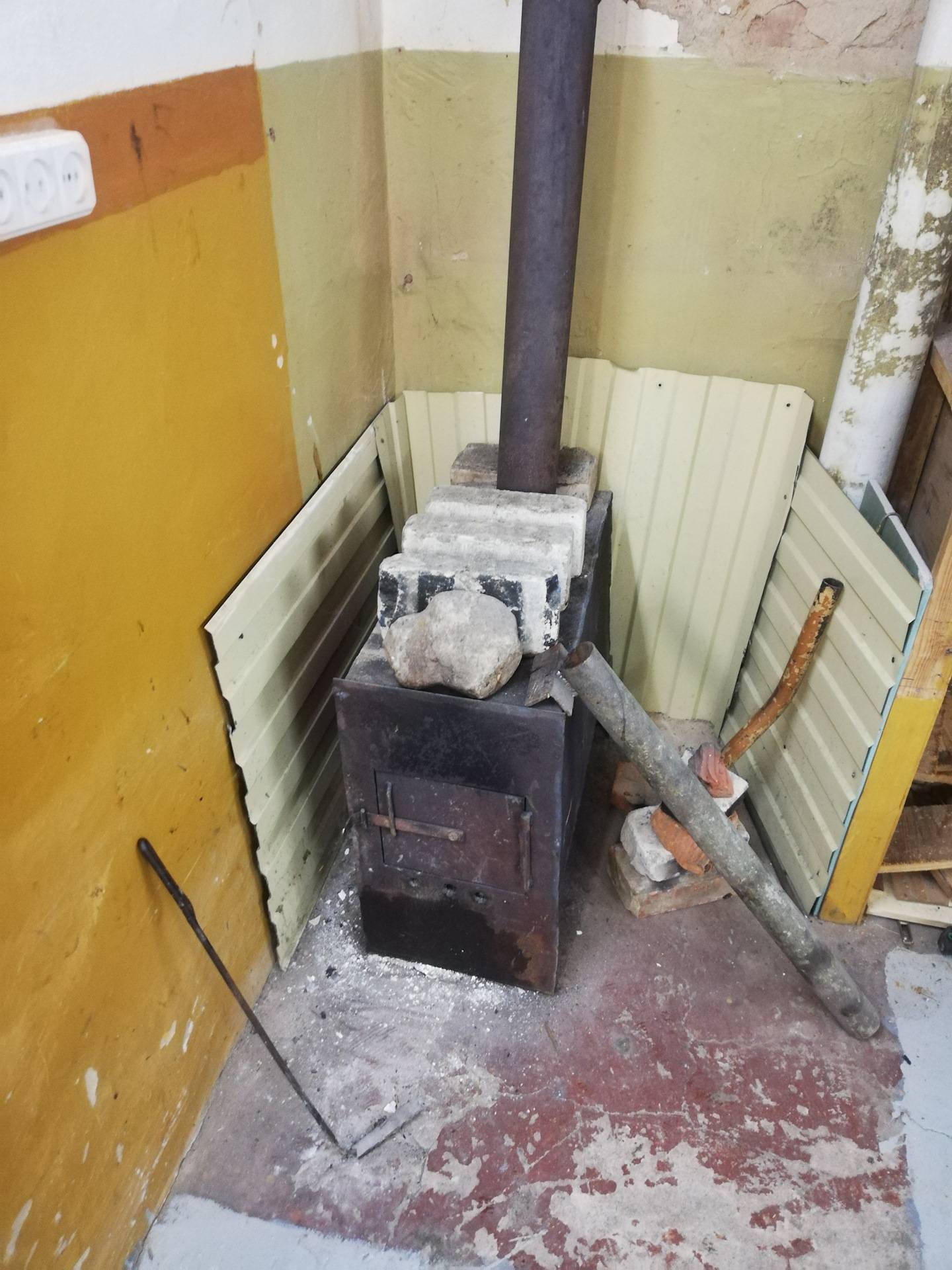 Habituellement, le four est placé près de l'un des murs. Cela permet d'économiser de l'espace dans la pièce, mais augmente la probabilité d'un incendie de mur. Par conséquent, la partie du mur située à proximité immédiate du site d'installation du four est isolée avec une tôle, une feuille d'amiante ou une couche de plâtre.
