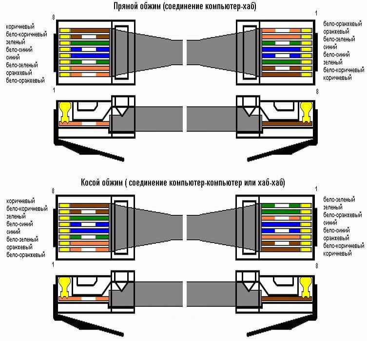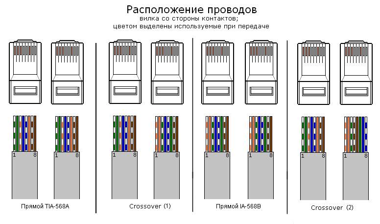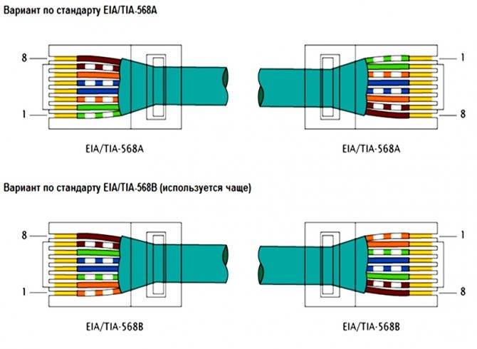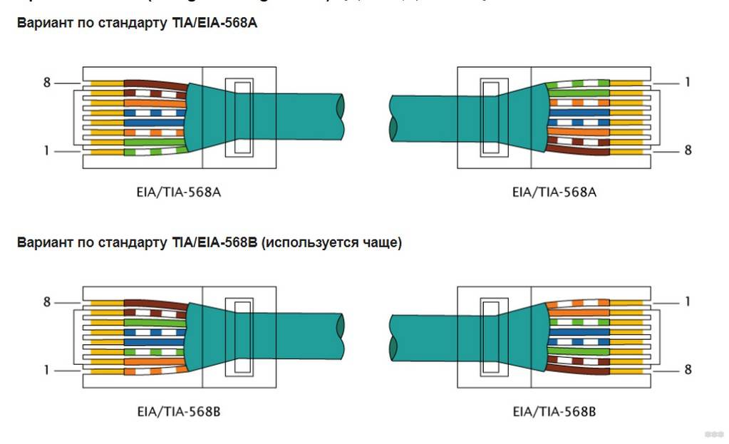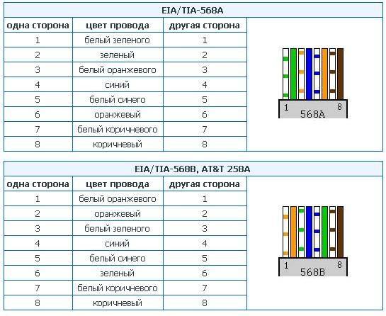 Il existe deux schémas de connexion : T568A et T568B. La première option - "A" n'est pratiquement pas utilisée dans notre pays, et partout les fils sont disposés selon le schéma "B". Il faut s'en souvenir, puisque c'est elle qui est requise dans la plupart des cas.