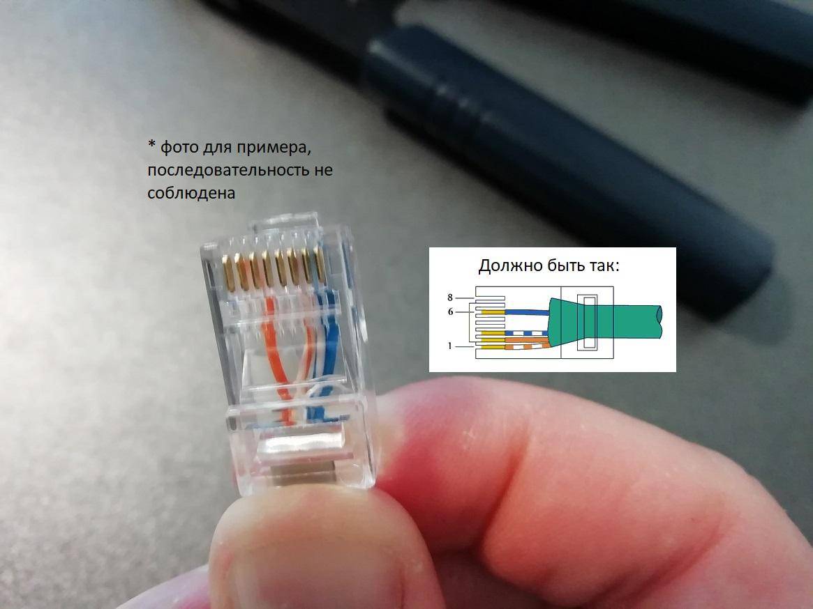Les contacts doivent être enfoncés fort. Pour qu'ils traversent le câble. Le contact lui-même ne doit pas simplement s'aligner avec le corps du connecteur, mais être légèrement enfoncé dans le corps. Le travail n'est pas des plus faciles. Lorsque j'ai serti le câble avec un tournevis, il était à peine inséré dans le port LAN du routeur (mais cela fonctionnait déjà), après quoi j'ai encore appuyé sur les contacts avec un tournevis.