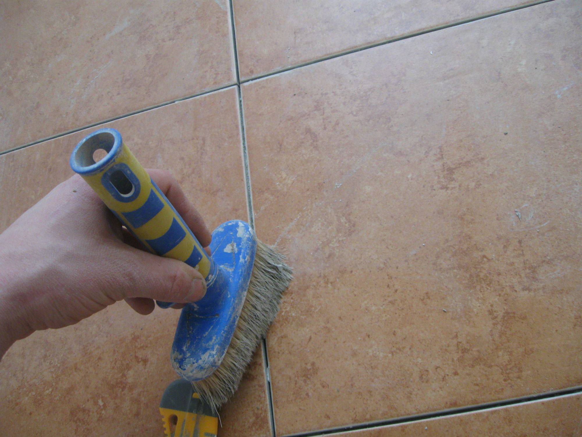 S'il n'y a pas de brosse spéciale pour carrelage, retirez le coulis sec avec un morceau de laine légère ou de feutre