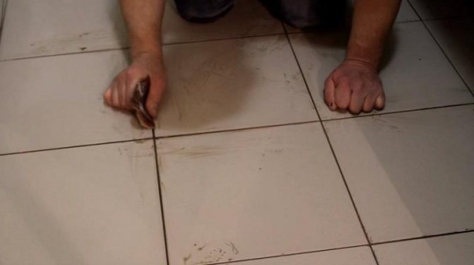 - La cause de la contamination peut être les restes de détergents, ainsi que les particules de saleté de l'eau avec laquelle les carreaux ont été lavés. Une fois l'humidité sèche, tous les débris restent dans les coutures et sont pressés.