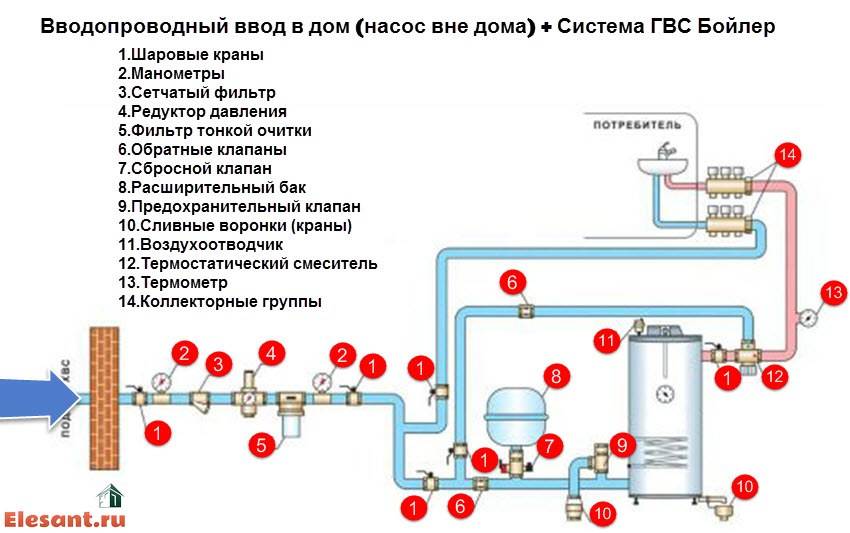 Calcul des raccords et autres éléments auxiliaires, ainsi que l'indicateur de la section du pipeline. Il est recommandé d'installer des vannes d'arrêt devant chaque source d'arrivée d'eau.