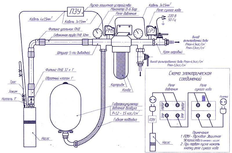 Pour que tout se passe bien à la fin, avant d'installer le système d'alimentation en eau, il est nécessaire d'élaborer avec soin le schéma de pose dans la rue et de câblage dans le chalet. Si ce projet est réalisé correctement, cela évitera de nombreux problèmes lors des travaux d'installation et du fonctionnement ultérieur du système d'alimentation en eau assemblé.