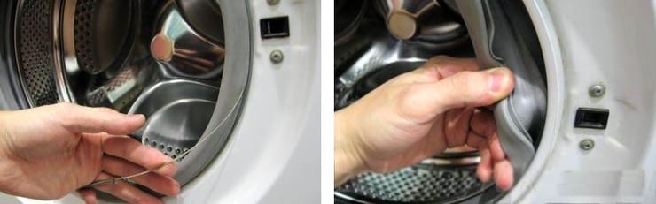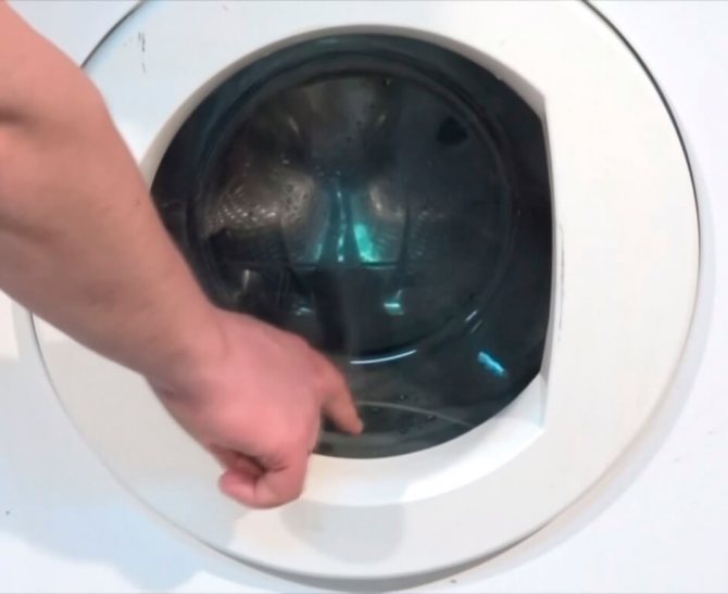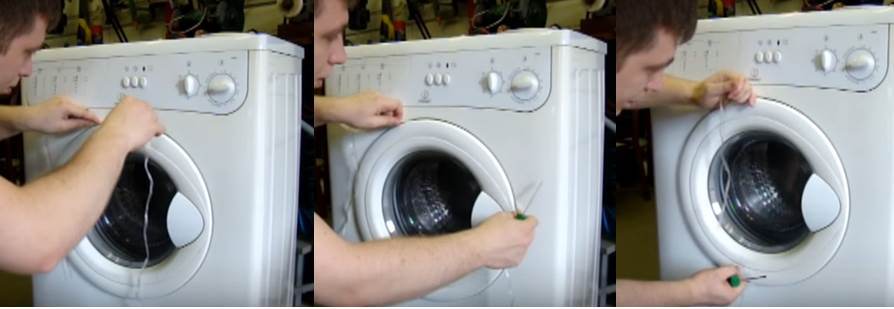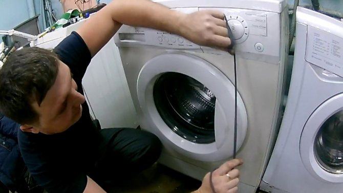1. Insérez le cordon entre la porte et le corps de la machine à laver elle-même. Vous pouvez vous aider d'un tournevis à pointe plate ou d'un autre outil similaire non tranchant.