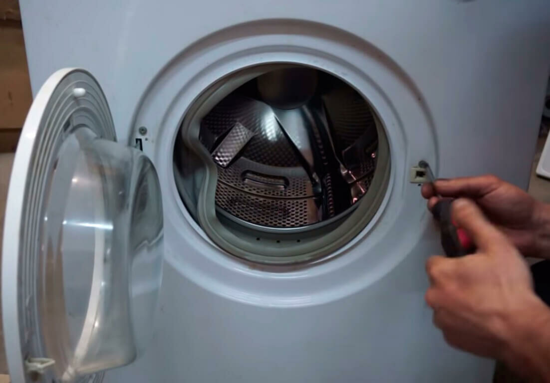 S'il n'y a pas de câble d'urgence, le panneau supérieur de la laveuse devra être démonté. Après cela, la voiture dévie un peu vers l'arrière pour que son réservoir dévie un peu. L'étape suivante consiste à trouver le loquet et à le rétracter pour libérer la porte.