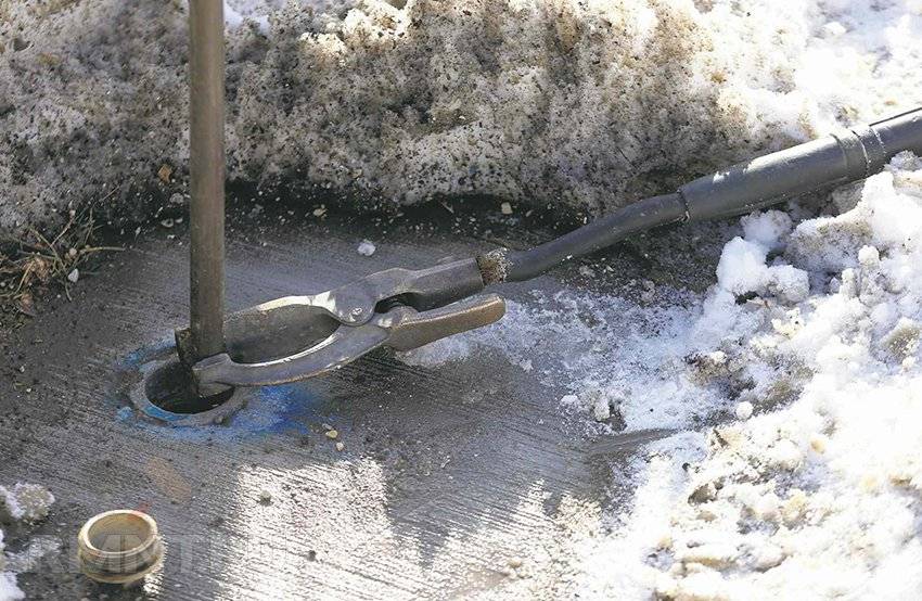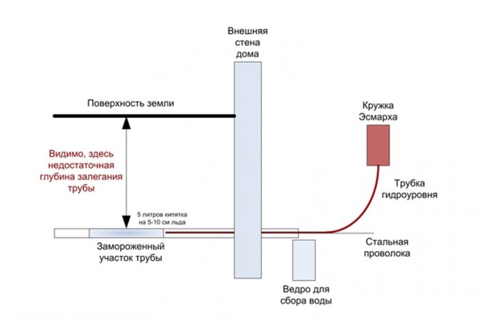 La méthode est bonne pour les chambres. Si votre canalisation souterraine non gelée est gelée, l'eau bouillante n'aidera évidemment pas ici. Vous devrez ainsi chauffer le tuyau pendant plus de 10 heures pour que la glace puisse fondre.
