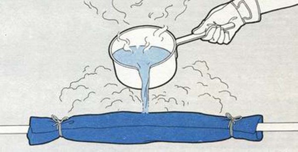 Cette méthode fonctionne si l'eau est gelée à la sortie du puits. L'eau chaude, utilisée progressivement, aide bien. Un chiffon est enroulé sur la section gelée de la ligne et de l'eau commence à être versée dessus.Tout d'abord, la température du liquide doit être jusqu'à 15 degrés. Avec chaque troisième litre, il est progressivement augmenté, l'amenant à 70 degrés. Progressivement, la glace dans le tuyau commencera à fondre et ouvrira l'accès à l'eau courante.