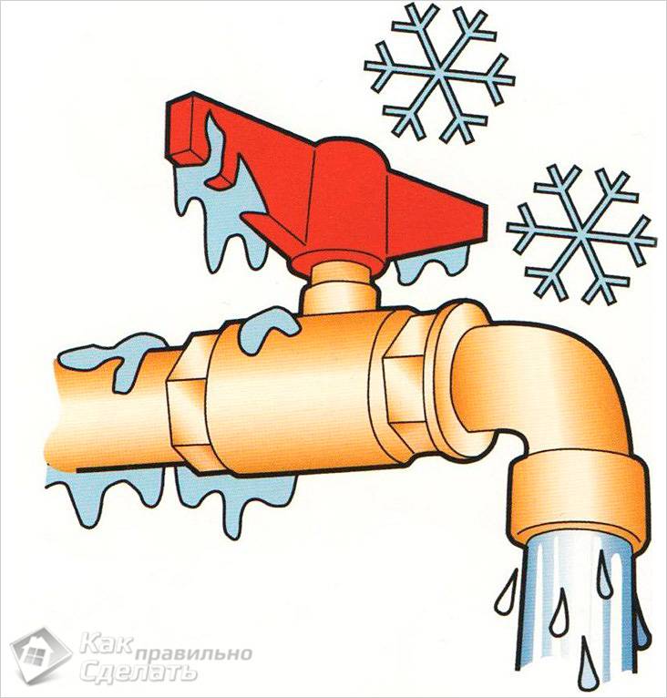 Afin de se débarrasser d'un tel moment négatif, de nombreux propriétaires laissent les robinets d'eau ouverts dans le froid. En conséquence, le système sera opérationnel pendant toute la durée de son utilisation. Si la vanne est fermée, il est tout à fait possible que le processus de formation de glace y commence.