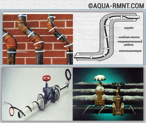 - En cas de fortes gelées, il est nécessaire de poser un câble chauffant le long des tuyaux - idéalement, cela devrait être fait sur toute la longueur de l'alimentation en eau, mais cela suffira également à protéger les zones «les plus faibles».