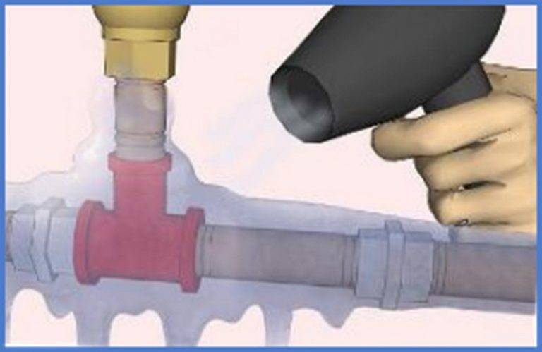 Cependant, si un bouchon de glace apparaît en eux, pratiquement toutes les méthodes d'influence externe ne peuvent pas leur être appliquées. Naturellement, l'utilisation d'un feu ouvert pour chauffer le plastique entraînera la destruction du tuyau et l'utilisation d'un sèche-cheveux de bâtiment s'avère souvent inefficace, car le plastique ne conduit pas bien la chaleur.