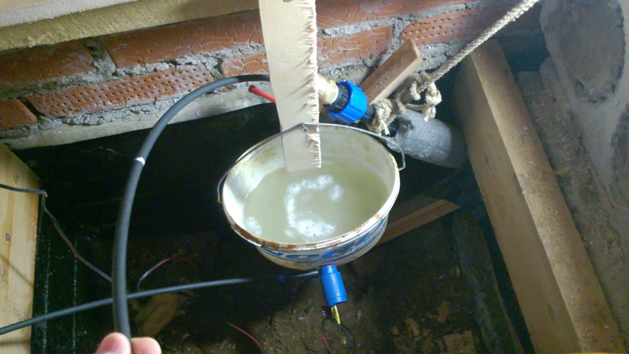 - Un seau est placé sous le robinet ouvert du système pour recueillir l'eau de fonte, qui s'écoulera lorsque la vapeur commencera à agir sur la glace.