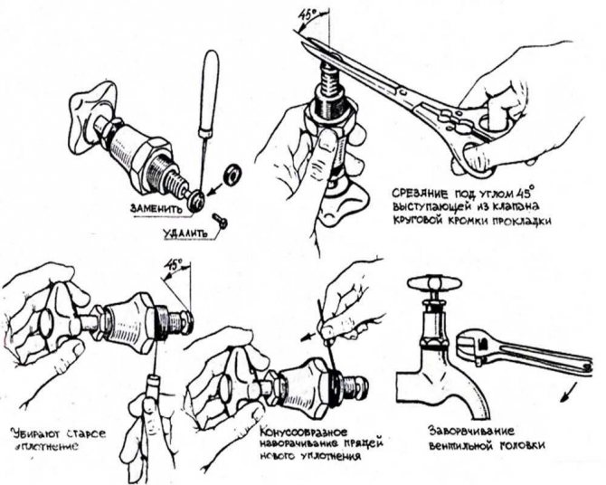 La difficulté de remplacer les joints de bobine est qu'ils sont rarement disponibles dans le commerce. Habituellement, vous devez découper la forme souhaitée dans un morceau de caoutchouc. Mais de tels détails ne durent pas longtemps. Une autre solution au problème consiste à utiliser le jeu de rechange qui est généralement fourni avec le robinet.