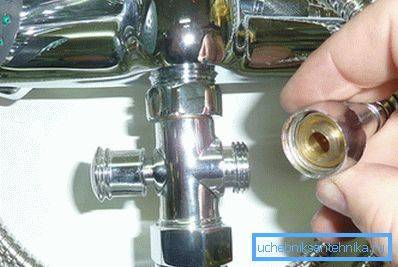 - Dévissez le tuyau de douche de l'interrupteur, car dans de telles conceptions, il est le plus souvent fixé avec un écrou supplémentaire.