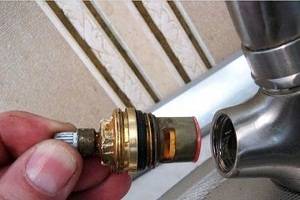 Les modèles de cartouche ont une conception différente. Actions pour leur réparation dépendent de la nature du défaut. Si le robinet ne se ferme pas complètement et coule constamment, vous devez changer la cartouche. En cas d'endommagement de la coque du boîtier ou de marée basse, le mélangeur est complètement démonté et remplacé par un nouveau.