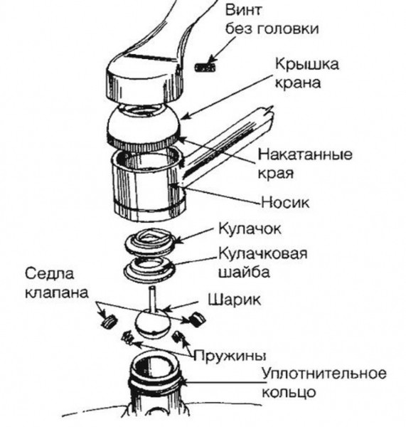Avant d'entreprendre la réparation d'un robinet à tournant sphérique, assurez-vous de vous familiariser avec le schéma de sa conception. Il est conseillé d'étudier les instructions pour un modèle spécifique, mais s'il n'est pas à portée de main, vous pouvez être guidé par les principes généraux de la structure d'un mélangeur à boules.