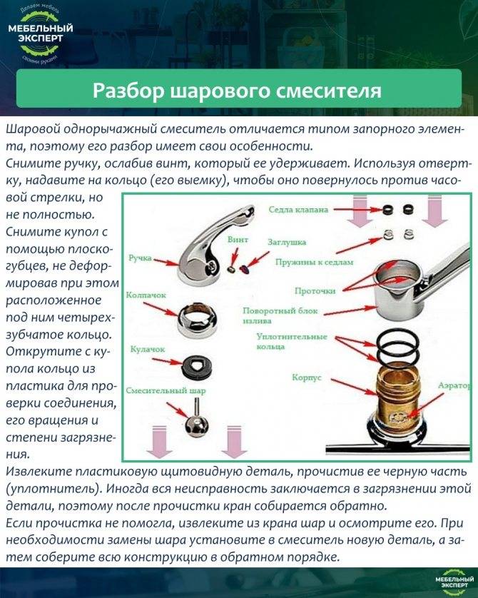 Malgré la similitude externe, les mélangeurs rotatifs ou à levier unique sont de deux types - avec une cartouche (cartouche) et une boule - avec une boule à l'intérieur. Vous pouvez réparer n'importe lequel d'entre eux, mais pour cela, vous devez d'abord les démonter. Et pour que vous puissiez non seulement démonter, mais aussi assembler, il est conseillé de vous familiariser avec la structure interne de chacun.