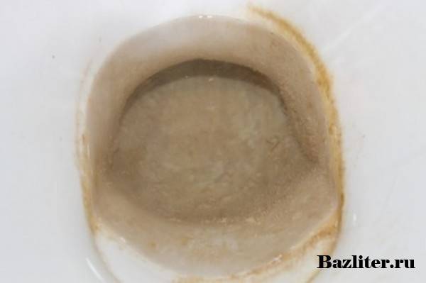 Calcaire - minéraux contenus dans l'eau (forage ou rivière, eau du robinet). Plus vous vous lavez souvent après vous-même, plus le film se forme activement. Vous devez vous débarrasser régulièrement du calcaire, car avec le temps, il obstrue les trous qui alimentent les toilettes en eau, ce qui entraîne une panne de plomberie.