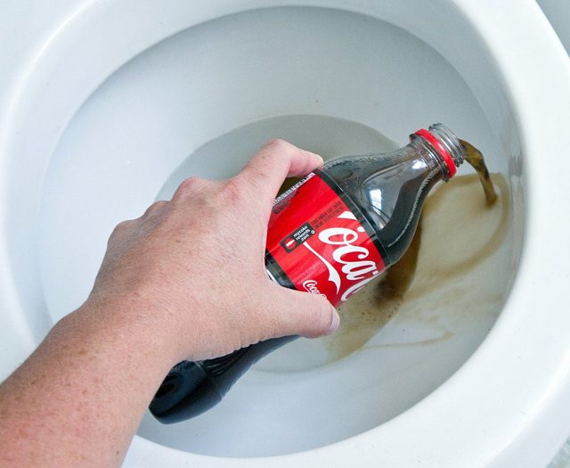 Il est facile de laver le fond et le fourré de la cuvette des toilettes de la pierre urinaire avec du Coca-Cola.