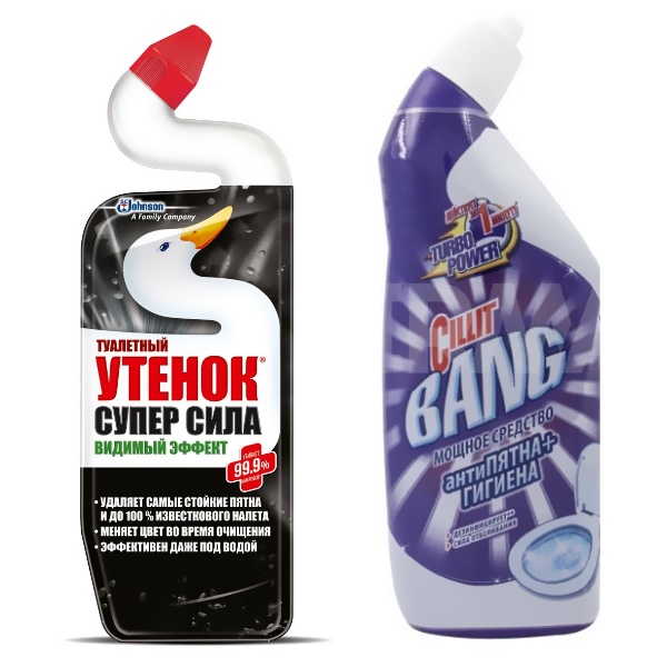 - "Canard de toilette" sous forme de gel. Le produit est disponible dans des bouteilles avec un bec fortement incurvé, ce qui vous permet d'éliminer le dépôt d'urée pétrifiée des endroits les plus inaccessibles. L'acide chlorhydrique qu'il contient résiste également bien à la rouille, cependant, sa concentration dans la masse totale du produit est très élevée. Afin de ne pas endommager la peau des mains, nettoyez la salle de bain uniquement avec des gants de protection. Les avantages du médicament comprennent un effet désinfectant, un faible coût et un emballage pratique.L'inconvénient est la forte odeur et la consistance plutôt liquide du gel - il se consomme très rapidement.