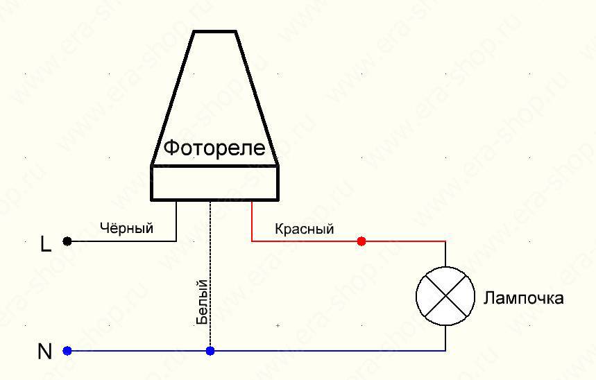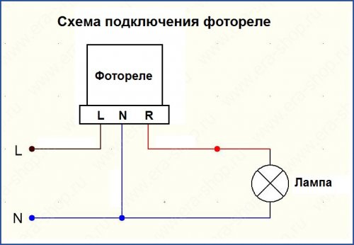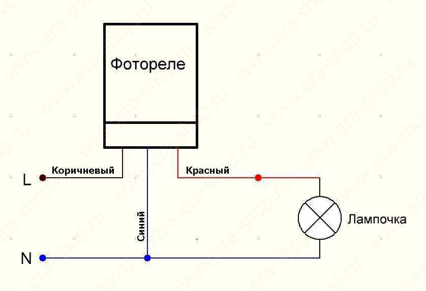 Sur le corps du photorelais, il y a un plan avec une désignation de couleur de tous les fils qui en sortent. En règle générale, le marron va à la phase du bouclier ("L"), le bleu à zéro ("N") et le rouge ou le noir à l'éclairage public. Il suffit de dénuder les extrémités de ces fils et de tout connecter conformément au schéma de câblage ci-joint.