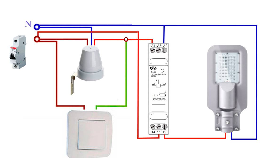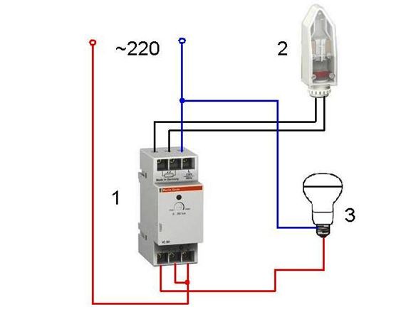 Dans le cas où, en plus du capteur jour / nuit, il est nécessaire de connecter des appareils avec des fonctions supplémentaires, par exemple une minuterie ou un détecteur de mouvement, ils sont installés après le montage du relais photo. Dans ce cas, l'ordre de priorité des appareils supplémentaires n'a pas d'importance.
