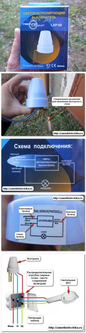 - Connexion du photorelais selon le schéma, qui se trouve dans la documentation technique jointe à l'appareil lui-même. Habituellement, un support est utilisé comme attache. Il est installé dans un endroit où les rayons directs du soleil tomberont sur le relais, mais les autres sources lumineuses sont isolées.