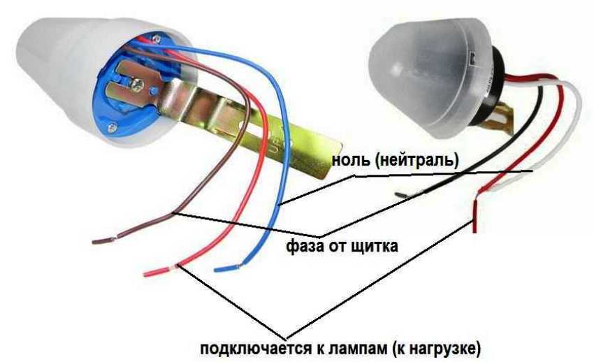Si le capteur photo a deux contacts, puis l'un d'eux se connecte à la phase du blindage et la seconde va à la lampe. Zéro est absent dans ce cas.