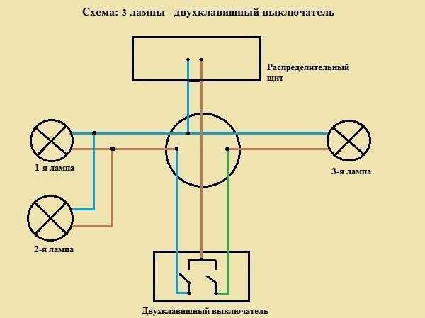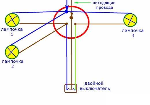 De cela, nous pouvons conclure que le circuit de connexion d'un interrupteur à deux ampoules n'est pas techniquement compliqué. Et un circuit similaire, avec lequel il est tout aussi simple de connecter le lustre à un double interrupteur.