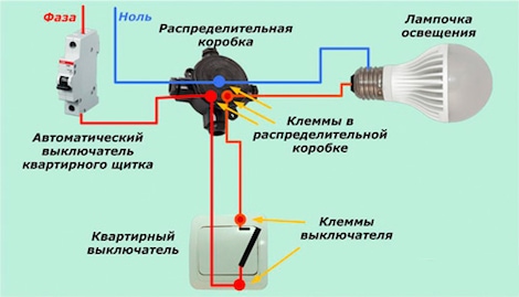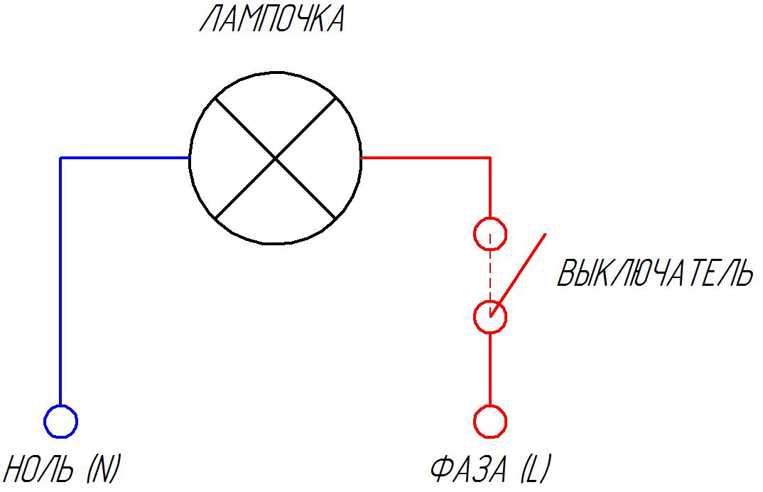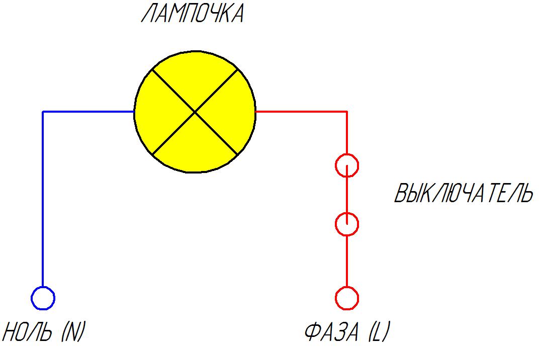 C'est très pratique s'il est bicolore, par exemple, le fil de phase est rouge et le fil zéro est bleu. En résumant ce qui a été dit, nous pouvons conclure que le circuit de connexion d'un interrupteur à une ampoule est un ensemble de fils, une ampoule et un appareil de commutation.