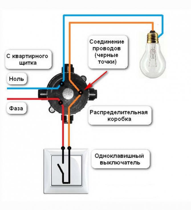 Schéma de connexion d'un interrupteur dans une boîte de jonction Connecter un fil directement à une lampe ou à un interrupteur est assez simple - cela ne nécessite aucune explication. Leur consommation électrique est supérieure à celle d'une simple ampoule, et donc les fils fins peuvent chauffer, ce qui n'est pas souhaitable.