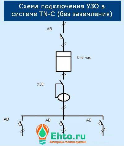 comment connecter un RCD sans mise à la terre - lors de la connexion d'un RCD sans mise à la terre, vous devez utiliser le schéma ci-dessous ;