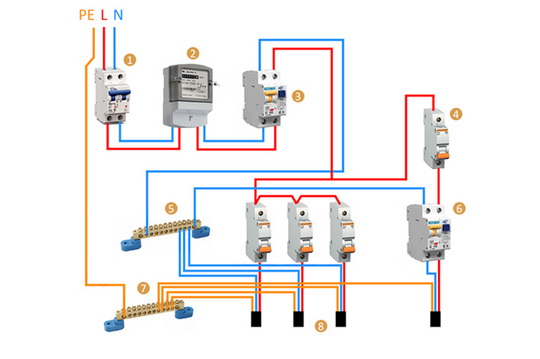 Habituellement, le schéma d'installation des équipements de protection prévoit la connexion en série de tous les éléments. Même si des modifications sont apportées au nouveau schéma avec l'ajout d'une nouvelle source ou d'un nouvel élément, la séquence ne doit pas être interrompue. Dans ce cas, il sera simplement connecté à la section appropriée du circuit électrique. Pour les câblages électriques monophasés, dans lesquels il n'y a pas de conducteur de terre, le disjoncteur différentiel doit être placé devant le tableau et devant le compteur d'alimentation. Ensuite, il y a des disjoncteurs (s'il y en a plusieurs) et un égaliseur de tension. Sous réserve d'un tel schéma, il est possible d'exercer un contrôle complet sur tout le câblage de la maison, et non sur sa branche individuelle.