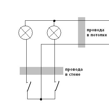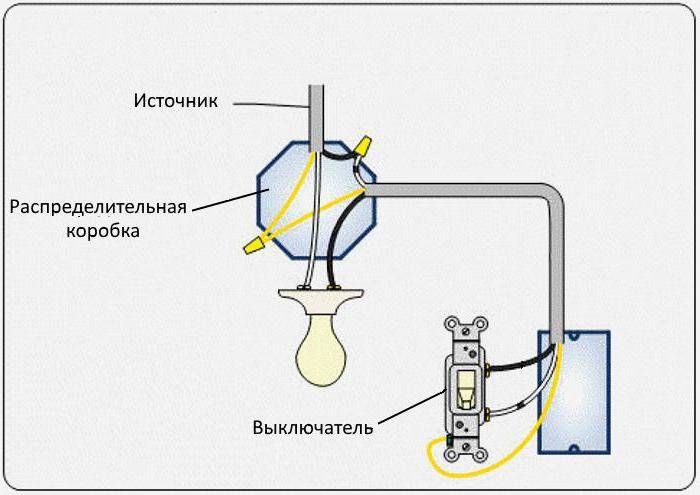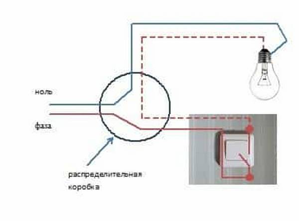 Mais il existe des cas où il est nécessaire de connecter une lampe supplémentaire avec un interrupteur séparé. Ensuite, le câblage à partir d'une prise existante est possible. Le choix de la méthode de référence (externe ou interne) n'a pas de sens maintenant pour démonter, cela ne s'applique pas à ce sujet.Il est plus logique de considérer les options de connexion. Lors de l'installation d'un interrupteur à clé unique, aucune difficulté ne survient, vous n'avez besoin que d'un fil à deux fils et du dispositif de commutation lui-même.