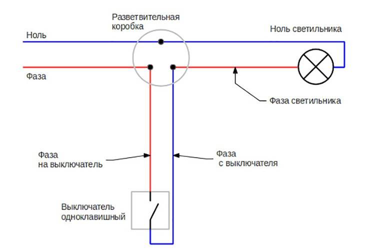 Lors des travaux d'installation, il convient de rappeler que le zéro ne peut pas être connecté à l'interrupteur et lors des travaux de réparation, il est nécessaire de vérifier que le zéro ou la phase est fourni aux contacts.