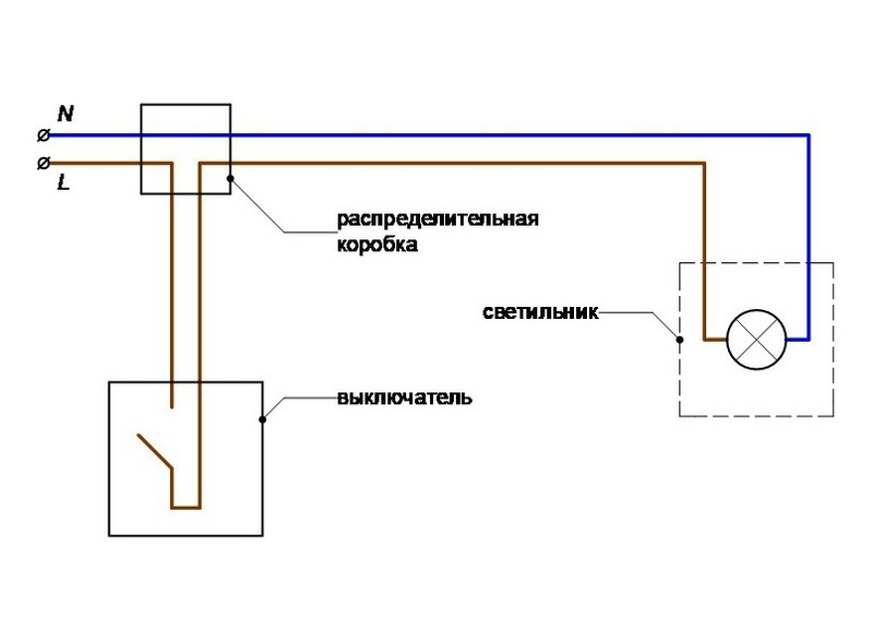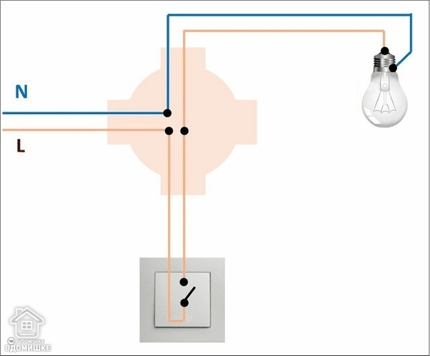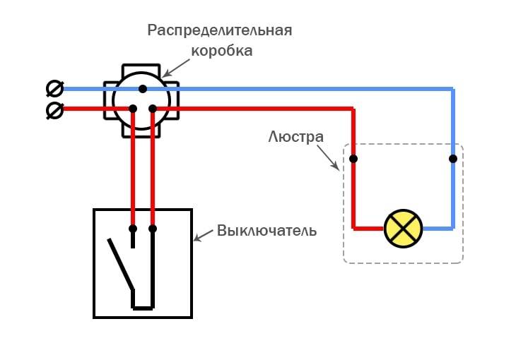 Schéma de connexion d'un lustre à un interrupteur simple