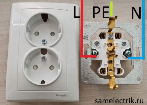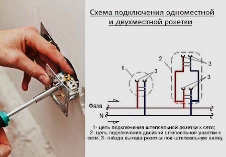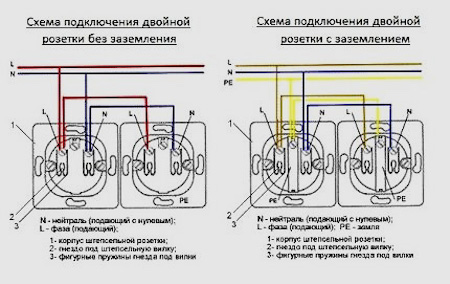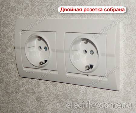 Lorsque vous travaillez avec une prise double, les actions sont effectuées en connectant les deux éléments structurels à la même ligne de câblage. 6 fils sont connectés à l'un d'eux, et 3 fils principaux sont connectés au second.