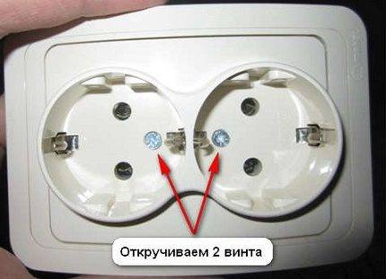 - La partie travaillante du produit est également retirée en dévissant les vis. Dans ce cas, tenez soigneusement une partie de l'ancienne prise.