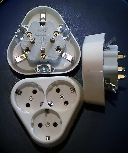 À l'heure actuelle, il existe un grand nombre de prises différentes sur le marché. Mais soit leur prix "mord", soit ils ne répondent pas à nos exigences. Par conséquent, une prise triple est souvent assemblée à partir de trois prises ordinaires.