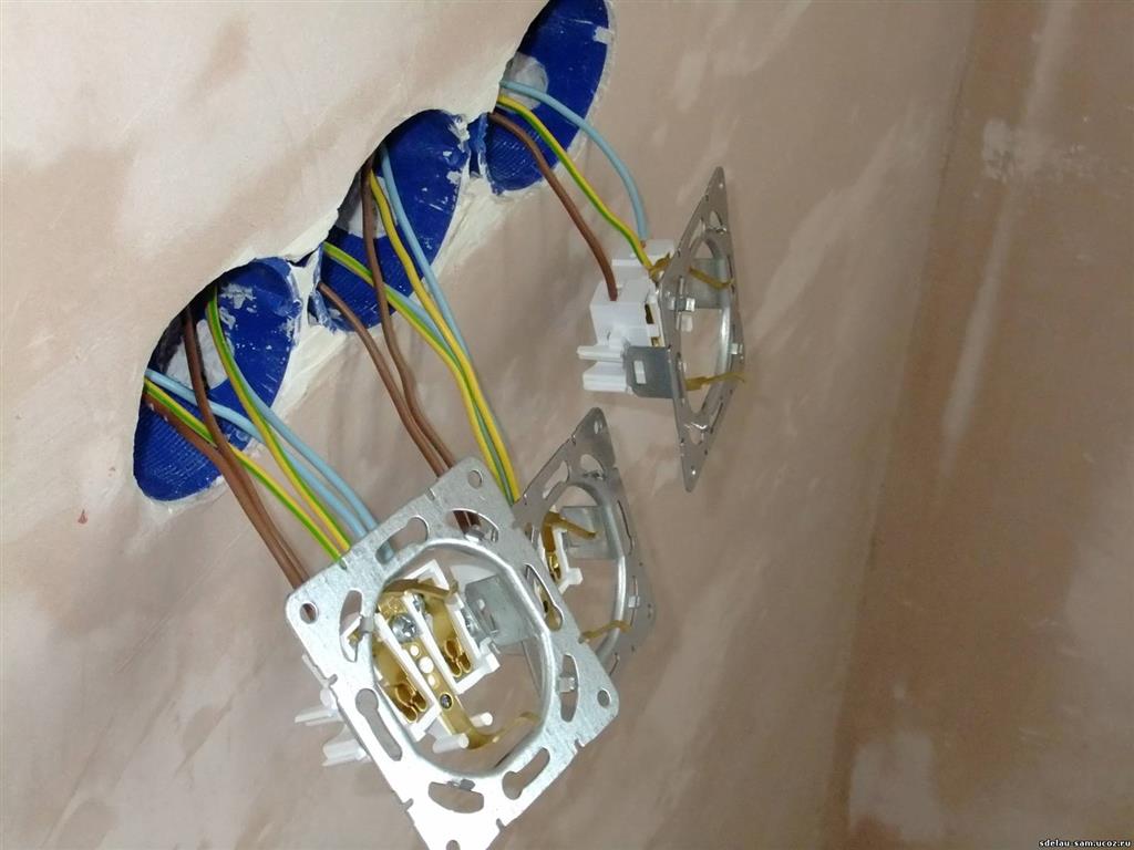 Les méthodes de connexion en guirlande et combinées peuvent être fermées et ouvertes. Le premier consiste à creuser des canaux dans le mur pour la pose de lignes et des "nids" pour les connecteurs, le second est mis en œuvre en posant un conducteur PE sur la surface du mur.