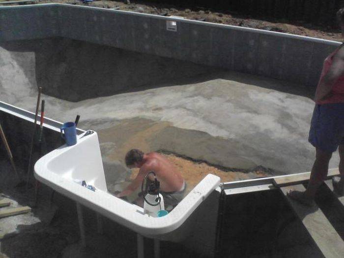 Comment faire une piscine de vos propres mains: instructions étape par étape pour la constructionLa prochaine étape est l'installation de la cuvette dans la fosse et son bétonnage. Tout se fait très simplement :
