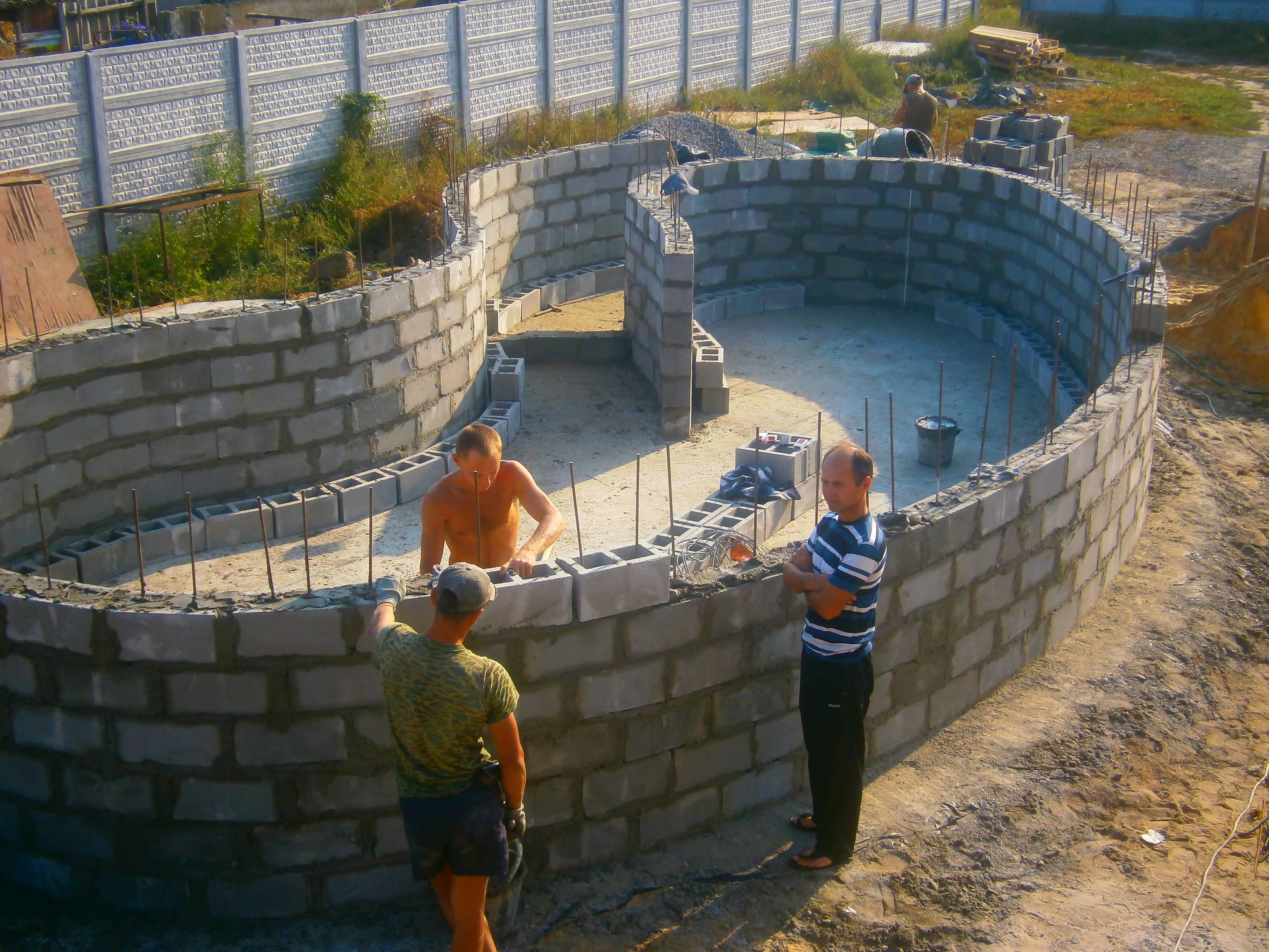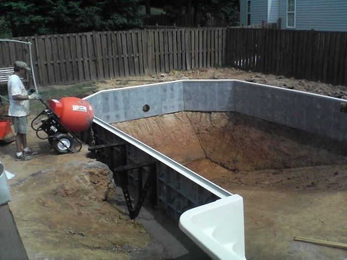 Tous les travaux d'installation des parois de la piscine sont souhaitables à effectuer en continu pour créer une structure monolithique. De plus, avant de couler, toutes les communications doivent être effectuées et les trous nécessaires à l'installation de l'éclairage doivent être prévus.