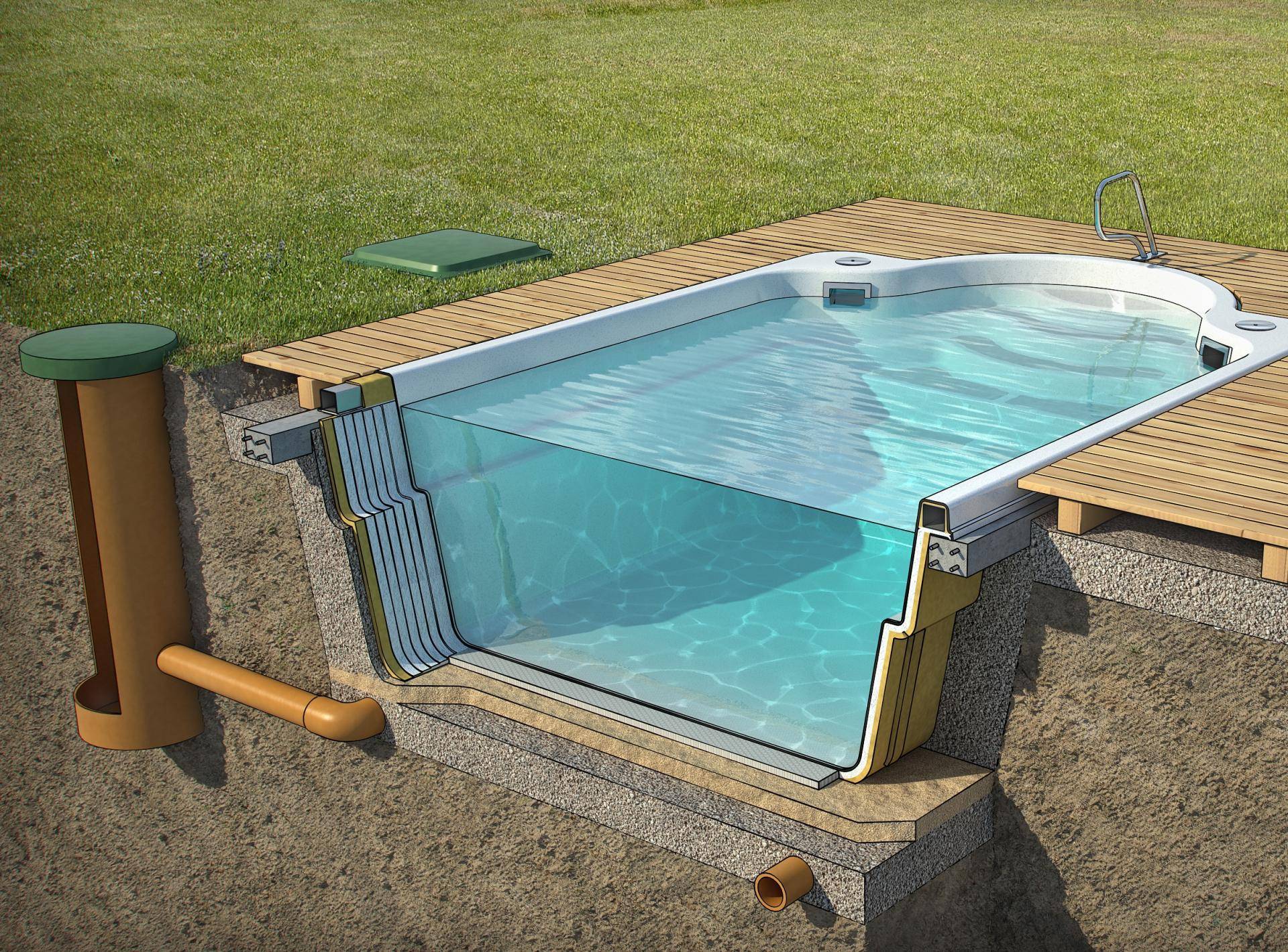 À propos, le bol n'a pas besoin d'être complètement enterré. Mais cela devrait être autorisé par le manuel technique de ce modèle particulier, car dans ce cas, la pression à l'intérieur de la piscine tombera sur les parois du réservoir, qui ne seront pas supportées par la terre de l'extérieur.