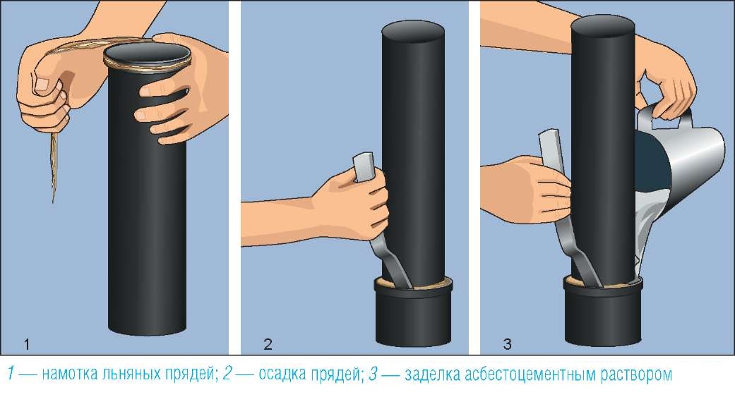 - mortier de ciment.Ce matériau est utilisé pour sceller les joints à emboîtement des tuyaux en fonte.