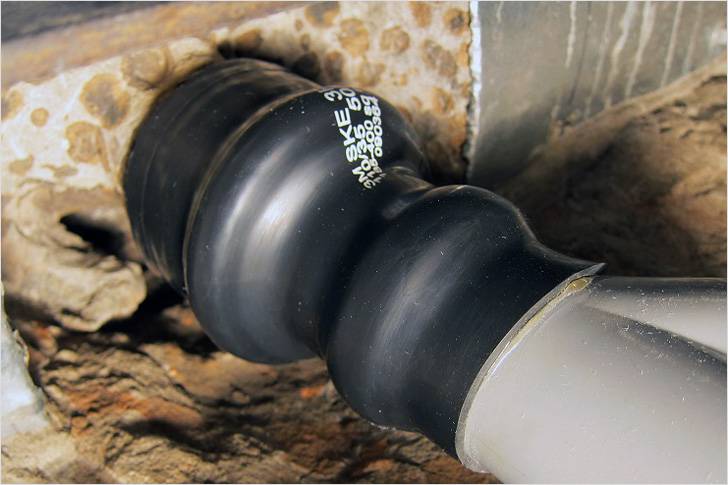 Des gels de silicone pour l'étanchéité sont introduits dans l'espace entre le tuyau et la douille. De plus, dans les canalisations horizontales, le gel est injecté sans enlever les cales. Mais une fois le gel durci, les cales sont retirées de l'espace et les cavités sont remplies d'une autre partie du gel. Mais l'installation verticale implique l'application préalable d'une couche de pâte de type gel sur le tuyau et la douille, suivie de l'assemblage de la connexion.