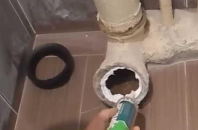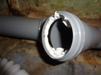 Le travail prend un minimum de temps et ne nécessite pas de compétences professionnelles. Pour l'extrusion, un pistolet de montage est utilisé. S'il n'est pas à portée de main et que le tuyau d'égout coule au niveau des joints, vous pouvez utiliser un simple marteau dont le manche servira de piston. À la fin du processus de vulcanisation, le mastic de silicone se transformera en une sorte de substance similaire aux propriétés du caoutchouc.
