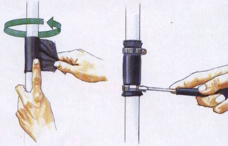 Pour que ce matériau ait l'effet escompté, les tuyaux doivent être nettoyés de la poussière et de la saleté, puis soigneusement essuyés ou séchés. Un apprêt est appliqué immédiatement avant de coller le ruban. Après cela, le ruban est enroulé autour du tuyau en spirale, étroitement, sans plis avec un demi-chevauchement.