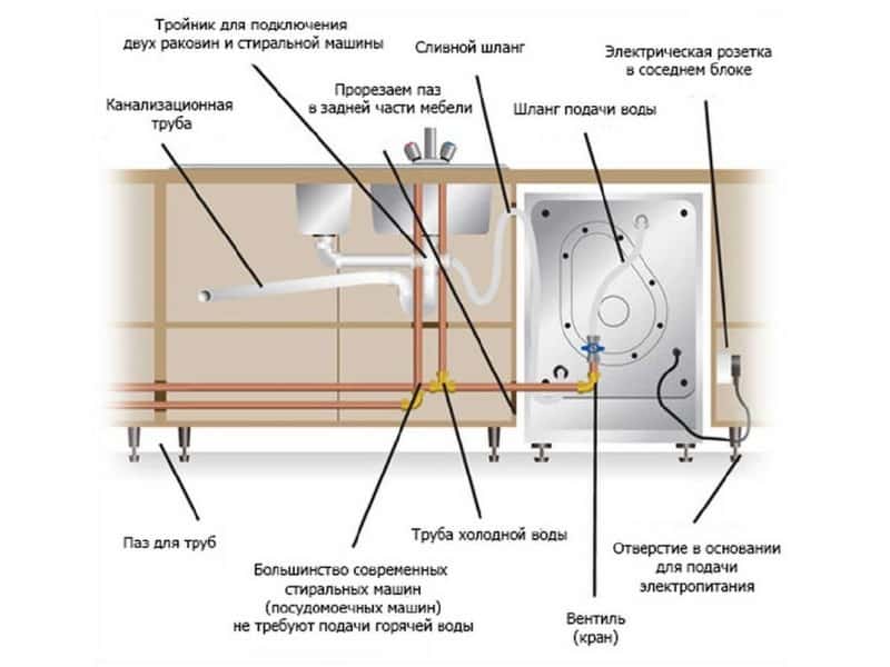 - Pas le meilleur endroit pour un lave-vaisselle - à côté de la machine à laver. Si les deux appareils sont allumés en même temps, les vibrations de la laveuse peuvent être transmises au lave-vaisselle et, par exemple, casser des gobelets en verre fragiles;
